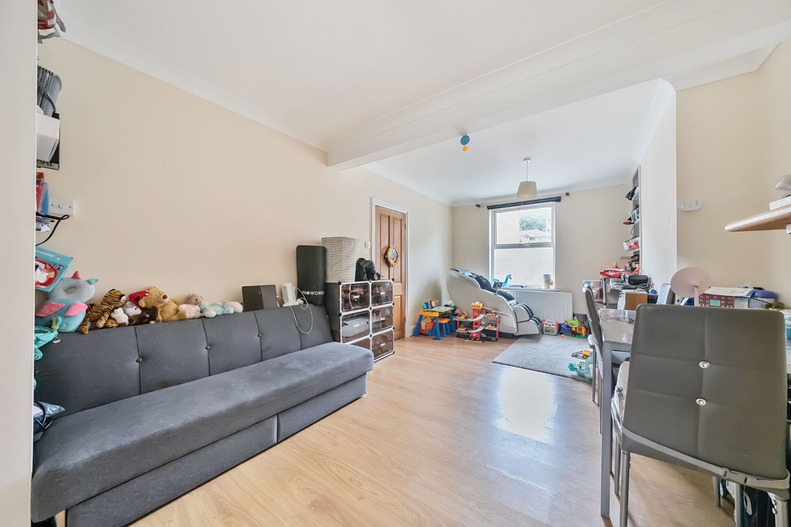 Step through a handy front porch, ideal for coats and shoes, and into a welcoming interior that combines period charm with practical modern living. The ground floor boasts a fitted kitchen and a family bathroom, as well as a spacious open-plan living and dining area, ideal for entertaining or relaxing in front of the log burner – a cosy centrepiece that adds warmth and atmosphere.