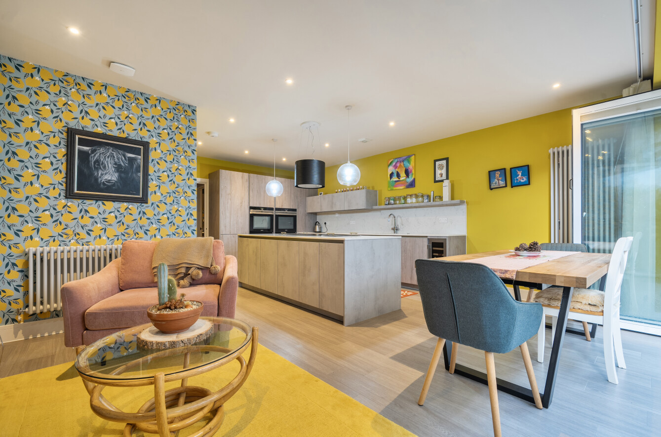 Light and space define the accommodation, which is finished to a high standard throughout. The ground floor opens with a welcoming hallway and cloakroom/WC, leading to a stylish kitchen at the front, fitted with sleek contemporary cabinetry and integrated appliances.